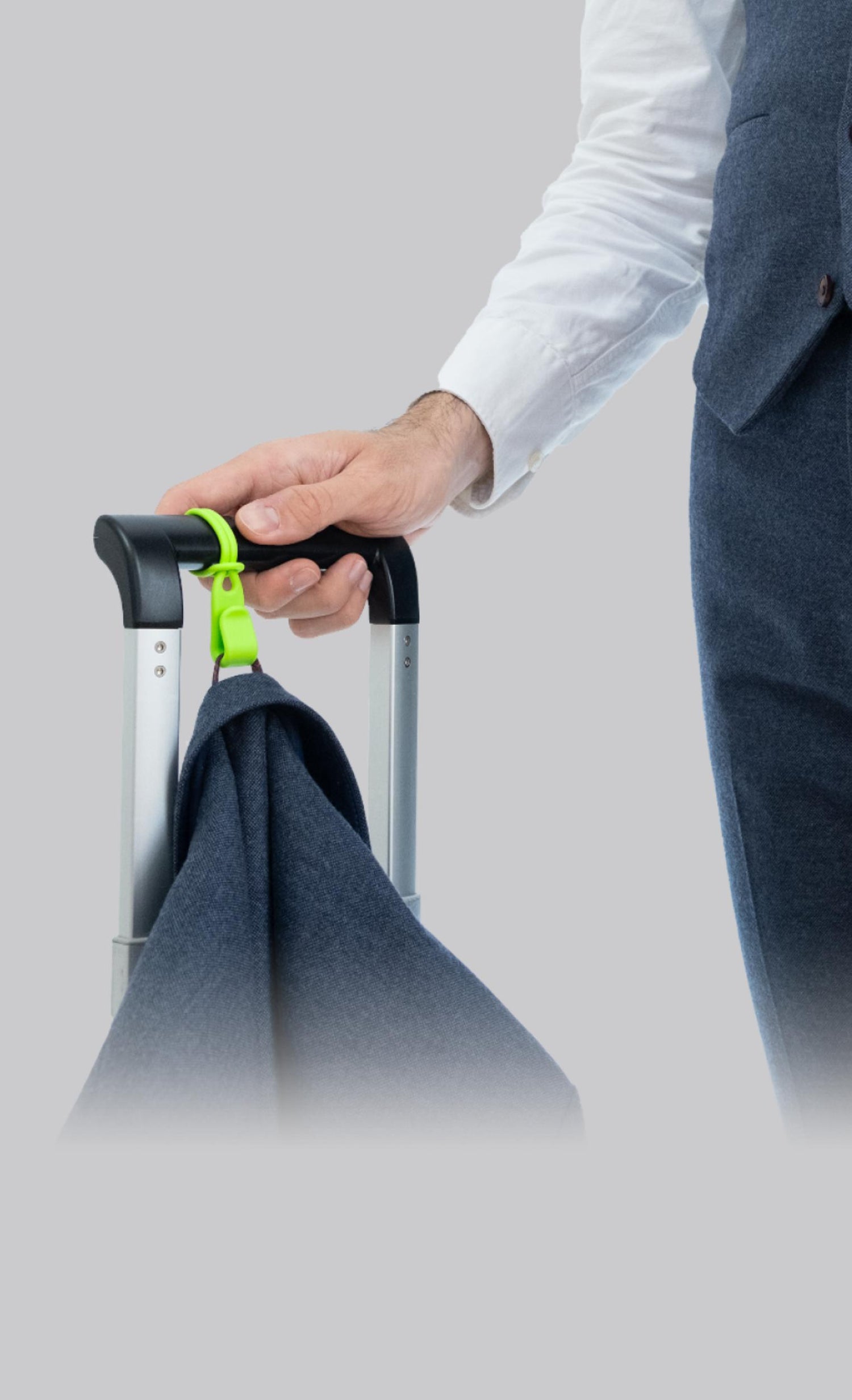 The Luggage Hook™ is a new travel essential that enables you to hang your coats, jackets or bags and start travelling hands-free. It is an innovative travel accessory designed to make your journey more comfortable and convenient. Whether you're juggling coats, jackets, or bags, this innovative travel gadget allows you to hang your items securely on your suitcase, transforming your travel experience to be completely hands-free. Imagine strolling through the airport, no longer burdened by heavy jackets or awkward bags – just attach them to your carry-on or luggage with ease.